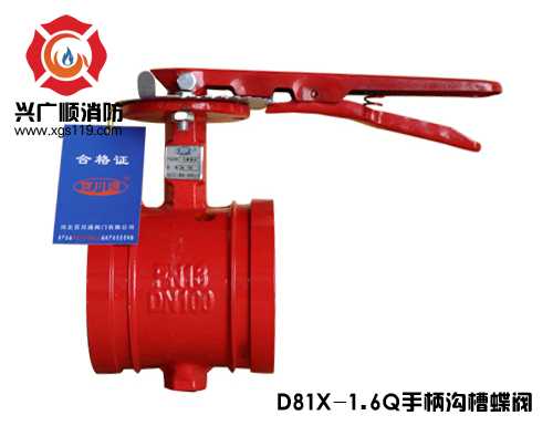 D81X-1.6Q手柄蝶閥既有良好密封性,又具備與管件連接所需求的快捷性,3C認證溝槽蝶閥的手柄與安裝在閥體上的流量牌相互配合,來控制流體的流量。